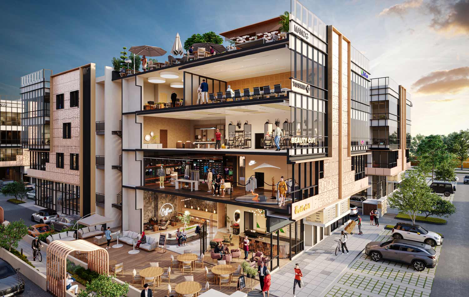 Conceived as a vibrant work-life village, Cube+ places connection at the heart of commerce. Our human-scaled architectural design features walkable corridors and curated storefronts, complemented by 66’ wide roads that provide ample parking and ease of access. This freehold development offers unique features like accessible rooftop spaces and private terraces—versatile areas that can accommodate 4 car parks or be utilized as ideal outdoor dining spaces.