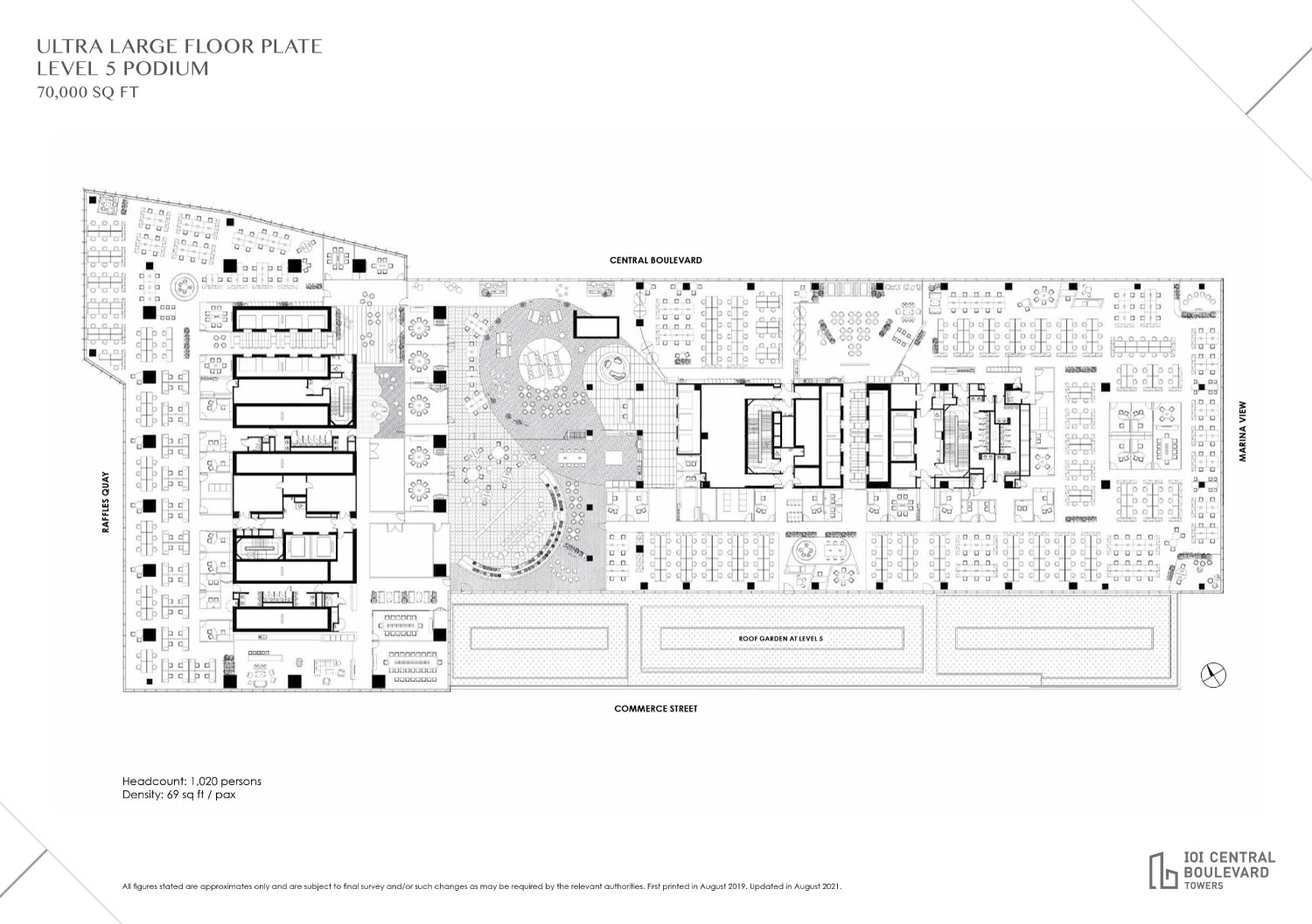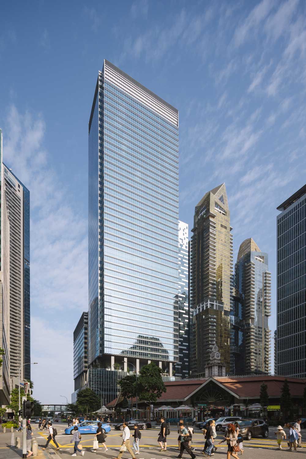 Serving the dynamic office community, the development encompasses two towers of premium Grade A office space complemented by dining and lifestyle amenities and the Marina Bay’s first urban sky park with a dedicated jogging track.