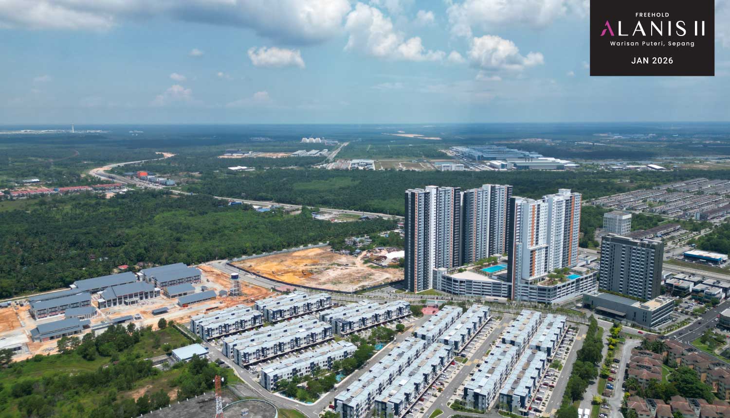 Strategically located within the growing township of Kota Warisan, Alanis Residence 2 enjoys excellent connectivity via major highways such as the ELITE Highway and Putrajaya-Cyberjaya Expressway, with the Salak Tinggi ERL station nearby. With a wide range of schools, higher education institutions, daily essentials, and commercial conveniences in close proximity, Alanis Residence 2 promises a balanced and vibrant living environment in a fast-developing address.